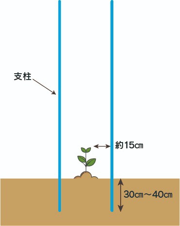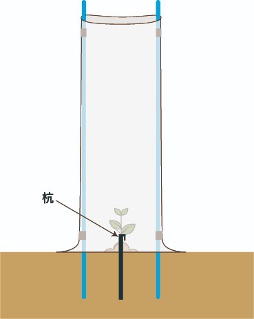 保護ネットは筒状になっています。支柱の上から支柱と苗木に被せます。